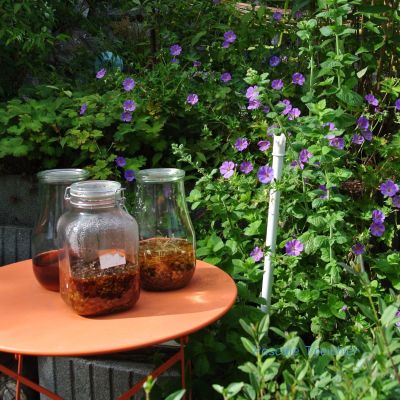 Die Hexenküche gärt vor sich hin: Tinkturen und Öle am ziehen,