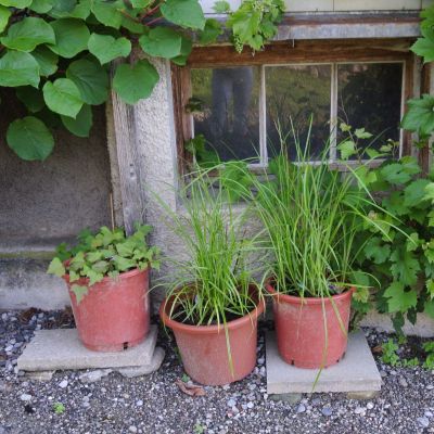 Im Kräutergarten: ein wildes Gewucher. Da es immer wieder regnet,