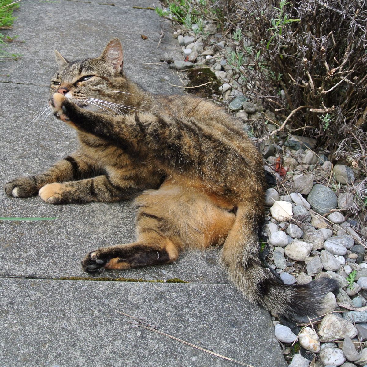 Hoch mit dem Bein in „die Katze die niederliegt“