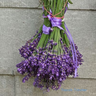 Die letzten Lavendelsträusschen hängen zum trocknen. Die Lavendel habe ich schon vor einem Monat geschnitten, jetzt habe ich einen schönen Blick auf die silber-grünen Kugeln die neu durchgetrieben sind, überall im Garten.