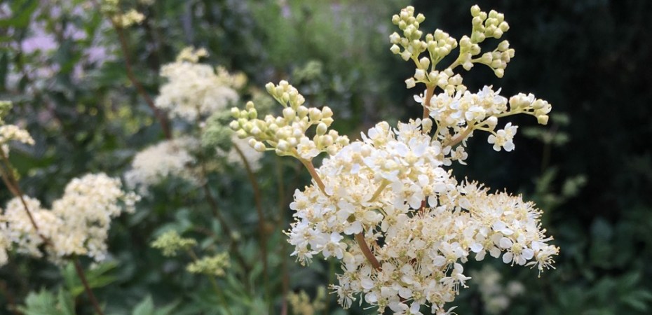 Diese Staude, die grösser als ich wird, ziert mit ihren zarten federigen Blütenrispen das Landschaftsbild. Ich werde nächstens wieder Blüten ernten und daraus Sirup kochen und sie trocknen für den Tee.