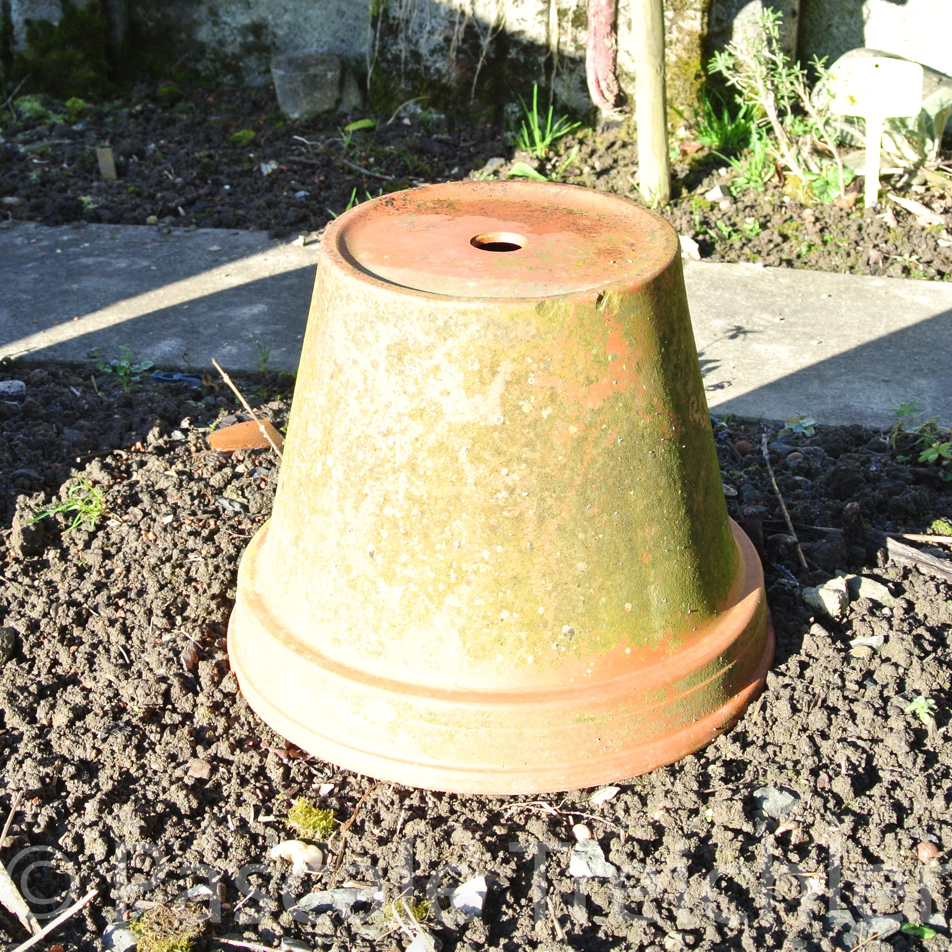 Der Rest liegt im Winterschlag. Zum Teil geschützt unter einem leeren Blumentopf (wie hier der Rhabarber) oder mit etwas Reisig und Jute eingepackt.