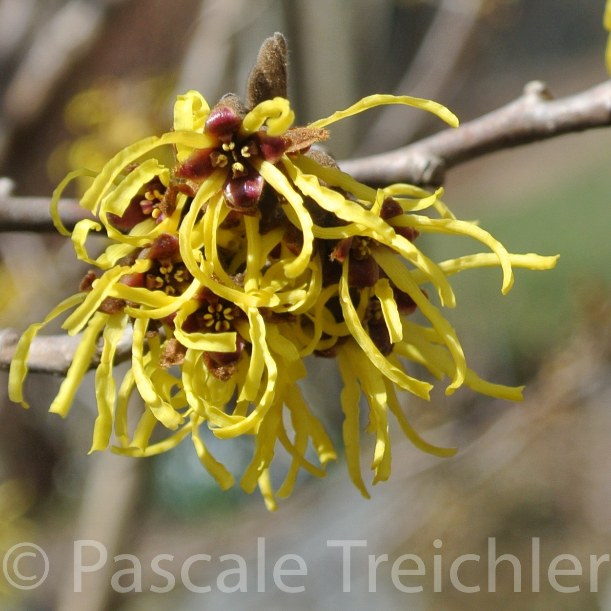 Die Hamamelis streckt auch schon die ersten langen Blütenblätter raus.