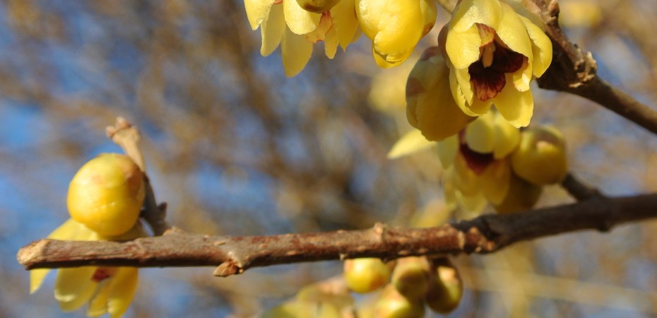 Der Strauch heisst Cimoneantus praecox Chinesische Winterblüte. Er ist die meiste Zeit vom Jahr ein richtiges „Gestrüpp“.