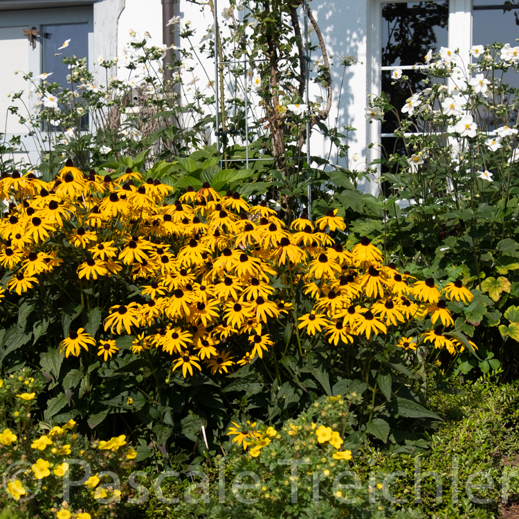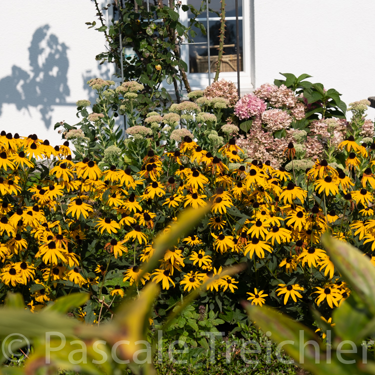 Die Rudbeckias tauchen den Vorgarten in ein gelbes Meer