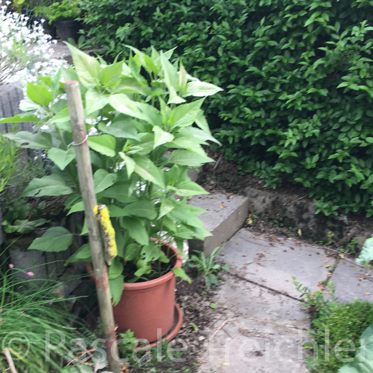 Also habe ich mitten im Sommer einen Umzug in ein leer gewordenes Beet organisiert und fleissig weiter gegossen. Er wurde grösser als ich und hat immer noch nicht aufgehört zu wachsen – ich habe langsam wirklich Angst bekommen.