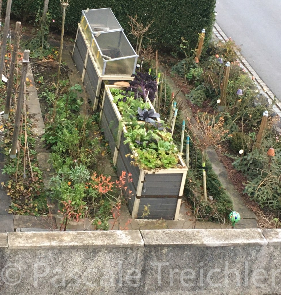 Der letzte Föhnsturm hat meine Treibbeetaufsätze auf den Hochbeeten zerrissen. So sind meine zarten Salate nun dem Frost ausgesetzt. Schade.
