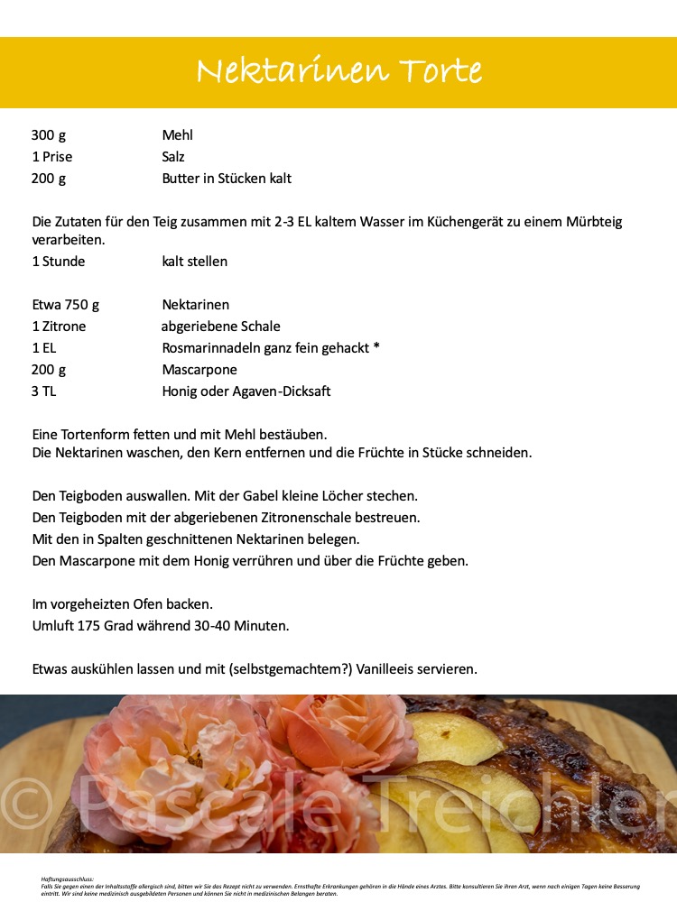 Sie sind reif die Nektarinen. Wie immer alle auf einmal. Darum ist es Zeit für leckere Torten und andere Nachtische. Natürlich essen wir auch einen Teil frisch ab Baum.