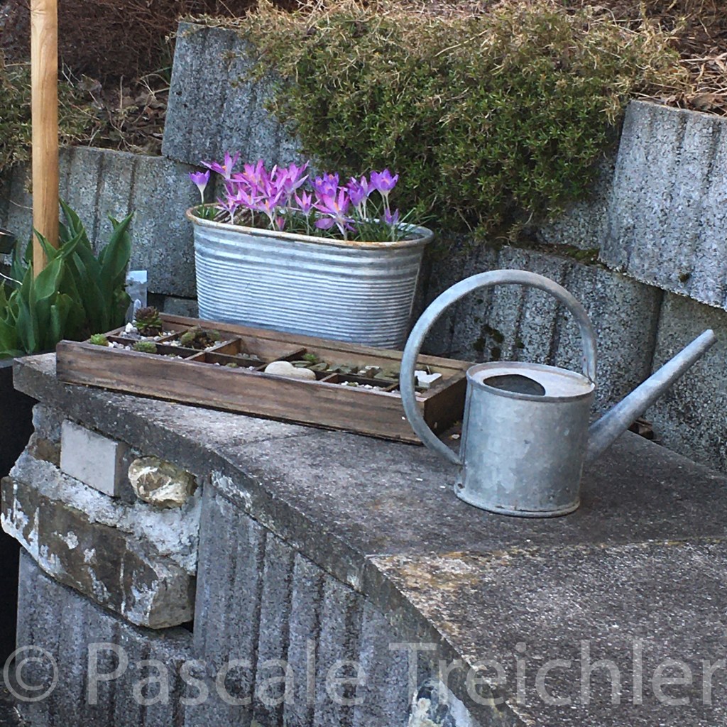 Im Kiesbeet sind die Krokusse aufgeblüht und verblüht. Hier fehlen ganz klar noch Narzissen um die Lücke bis zu der Tulpenblühte zu überbrücken