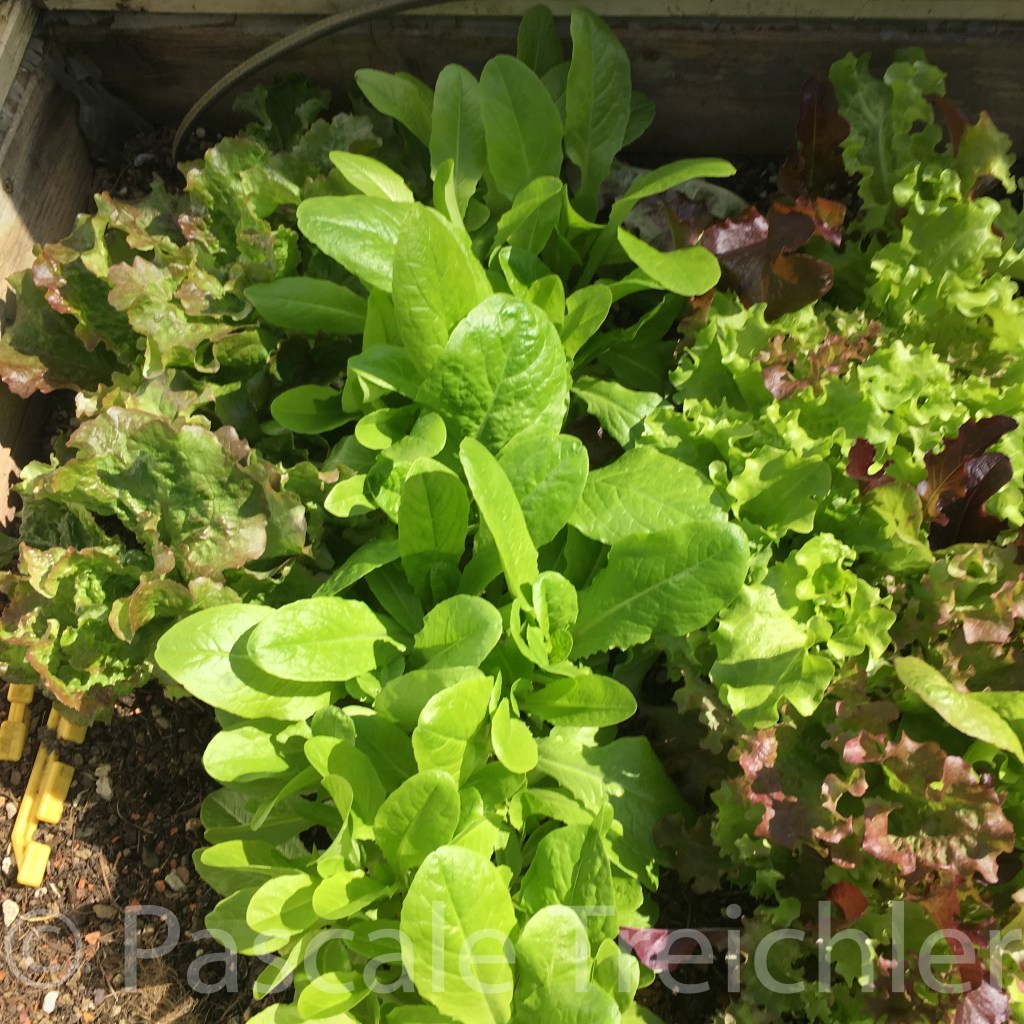 Jetzt essen wir bereits erste Schnittsalate (unter der Frühbeethaube)