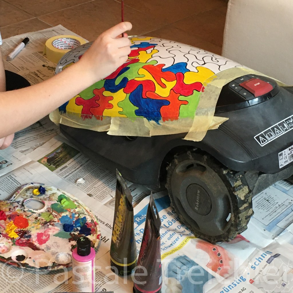 Direkt in die Natursteinmauer haben wir weitere Unterschlüpfe für die Insekten „gestopft“. Mit Lehm haben wir grössere Lücken gefüllt und schauen jetzt wer einzieht. In kleine bunte Blumentöpfe haben wir Schilfhalme eingefüllt und diese ebenfalls in der Mauer befestigt.