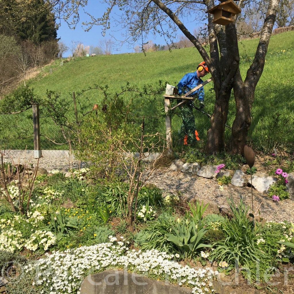 Den Teich habe ich wieder leer gefischt. Alles Laub ist raus und bildet im weissen Beet neue Erde. Die Kröten sind bereits wieder da. Auch die Molche habe ich schwimmen gesehen.
