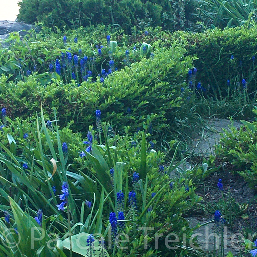 Der Vorgarten wechselte von den bunten Tulpen in seine blaue Phase mit den süssen Traubenhyazinthen und direkt anschliessend mit den Hasenglöckchen.