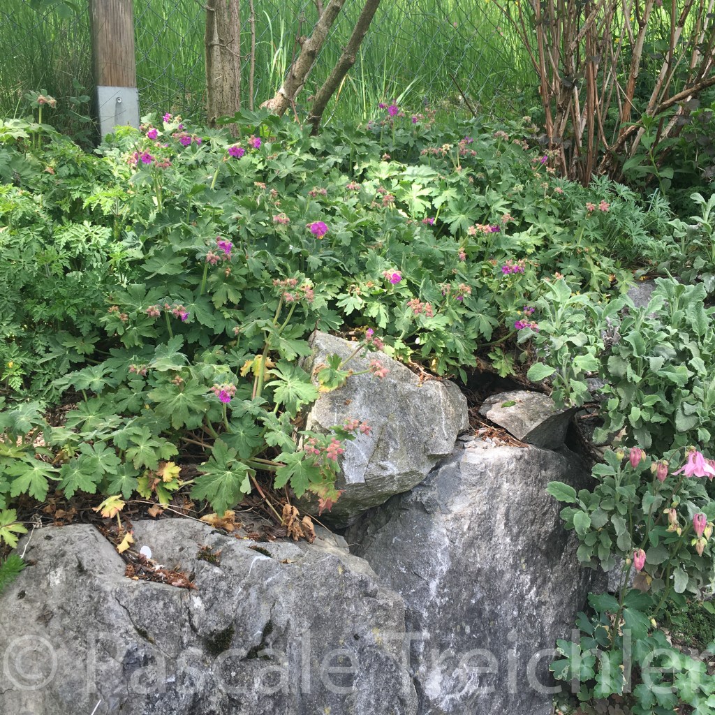 Auch die Mauerbeete sind am Erwachen. Herrlich wie die Sträucher einer nach dem Anderen zu blühen beginnt. Momentan ist die rosa Ecke am Aufblühen. Die ersten Storchenschnabel zeigen Farbe.