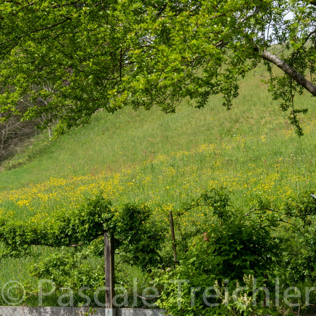 Das Gras ist bereits hoch. Wir haben dieses Jahr eine Invasion von scharfem Hahnenfuss, so was war noch nie da. Vielleicht ist das eine Phase in der Umstellung von der Fettwiese zur Blumenwiese.