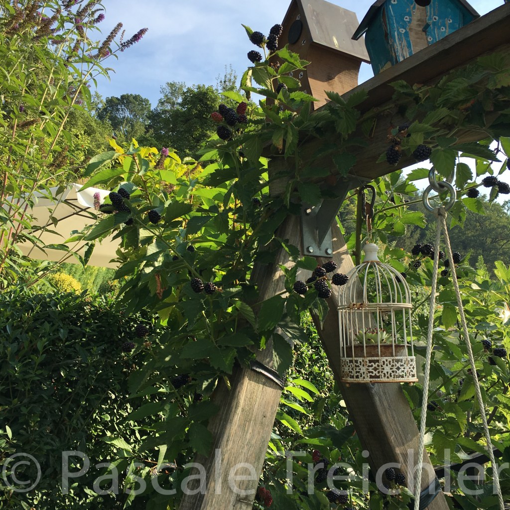 Der Beerenhimmel an der Schaukel ist eröffnet. Wir essen Brombeeren während dem Feierabend Drink, zum Frühstück, zum Dessert und überhaupt möglichst jedes Mal wenn wir daran vorbei gehen.