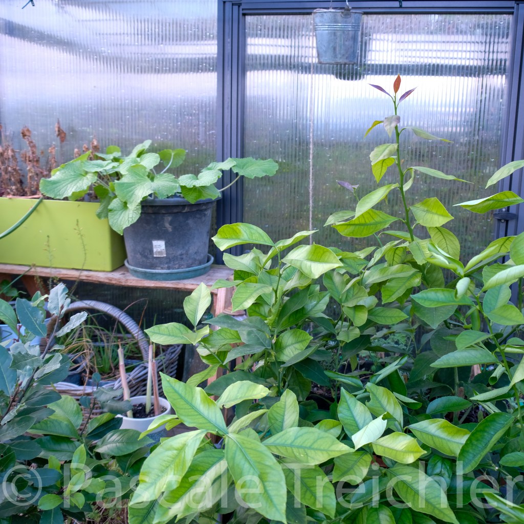 Im Gewächshaus wird es jedes Jahr enger. Ich glaube ich muss einen Winter-Sitter für meine Zitrusbäumchen finden. Toll ist, dass ich jetzt eigene Zitronen und Limetten ernten kann.