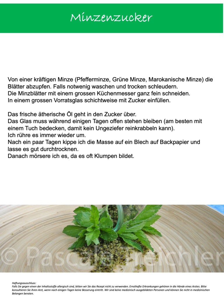 Die Minzen trocknen wir natürlich für Tee, aber wir machen auch einen leckeren Minzenzucker daraus, den ich für Lubera im Gartenbuch veröffentlichen durfte.