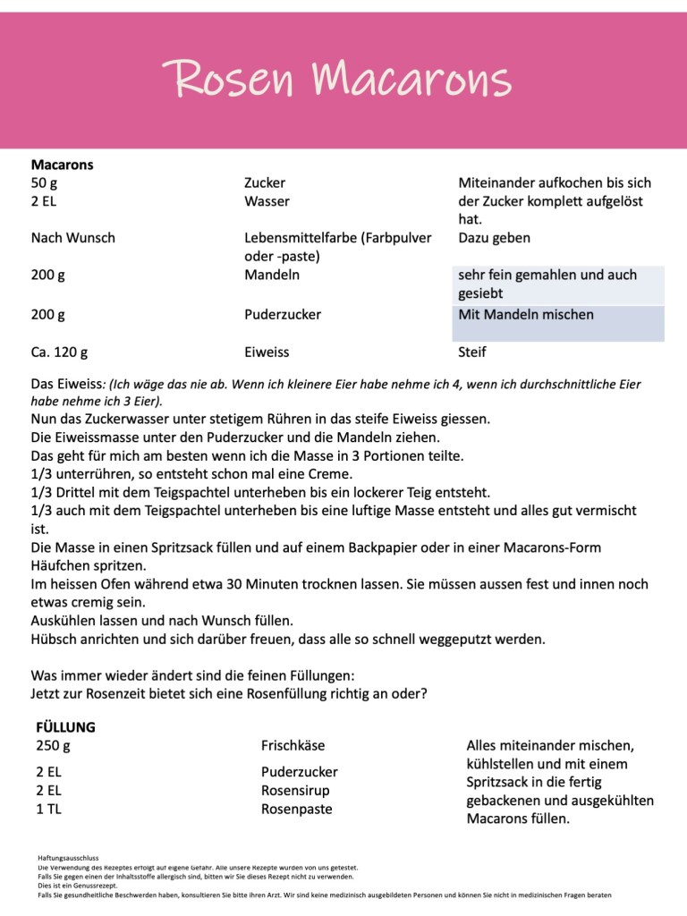 3. Juni 202211. Juli 2023 Pascale Rezept: Rosen Macarons Lecker, lecker, Macarons gehen immer oder?Nach dem ich Euch erst gerade ein Rezept für Rosenpaste gepostet habe, dachte ich wir machen was daraus. Rosen Macarons Hier findest Du weitere Rosenrezepte zum Ausprobieren mit Klick aufs Rosenfoto. Teilen mit: Auf Pinterest teilen (Wird in neuem Fenster geöffnet) Pinterest Auf Facebook teilen (Wird in neuem Fenster geöffnet) Facebook Drucken (Wird in neuem Fenster geöffnet) Drucken Einen Link per E-Mail an einen Freund senden (Wird in neuem Fenster geöffnet) E-Mail Mehr Auf LinkedIn teilen (Wird in neuem Fenster geöffnet) LinkedIn Gefällt mir Wird geladen … Ähnliche Beiträge