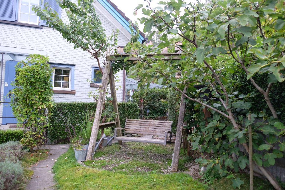 Die Schaukel ist in der Mittagshitze im Sommer am Schatten. Sehr entspannend.