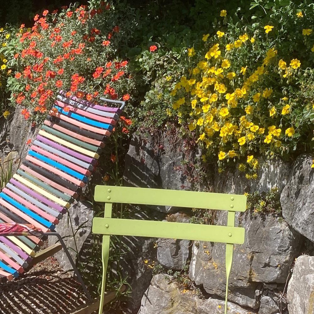 Das gelbe Beet wächst langsam ein. Es ist noch immer eine elende Jäterei von Nöten am prallen Sonnenhang. Aber langsam weden die Stauden grösser und bedecken mehr Fläche. Ein Strauch wurde von den Wühlmäusen gefressen und muss im 2024 ersetzt werden.