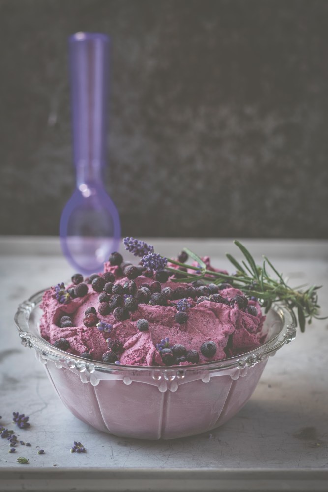 Das Rezept welches ich als Idee verwendet habe ist das Brombeer-Lavendel Eis. Ich nutze Kochbücher oft als Ideenquelle und verwende dann die Früchte, Obst oder Gemüse was bei mir grad in Saison ist.