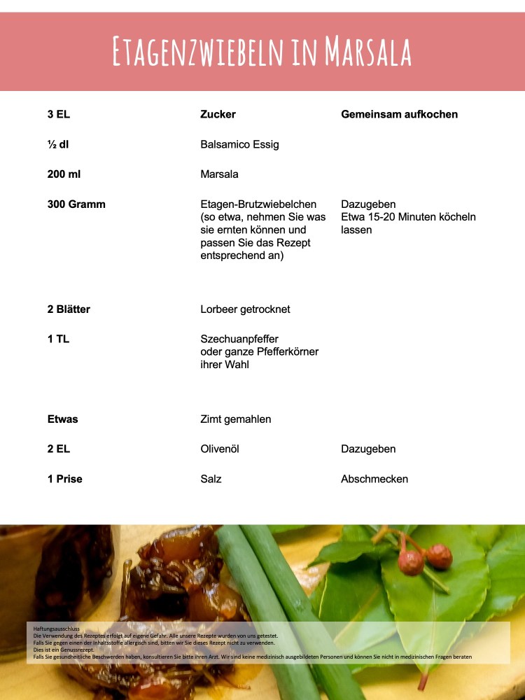 Hier bekommst Du ein Rezept für die kleinen Brut-Zwiebelchen die sich etwa auf Kniehöhe an der Pflanze bilden.