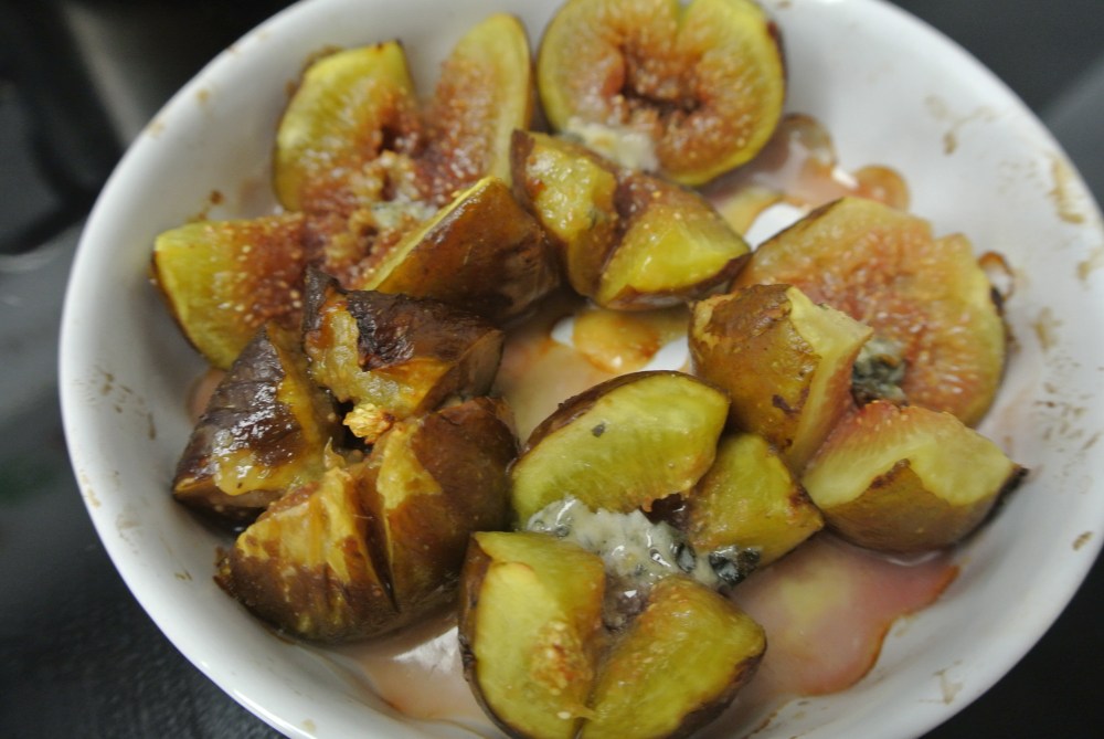 Wir geniessen zum Beispiel sehr gerne unsere Feigen mit Blauschimmelkäse überbacken.