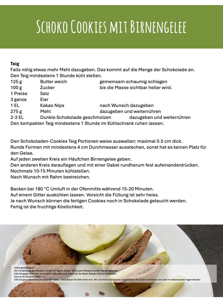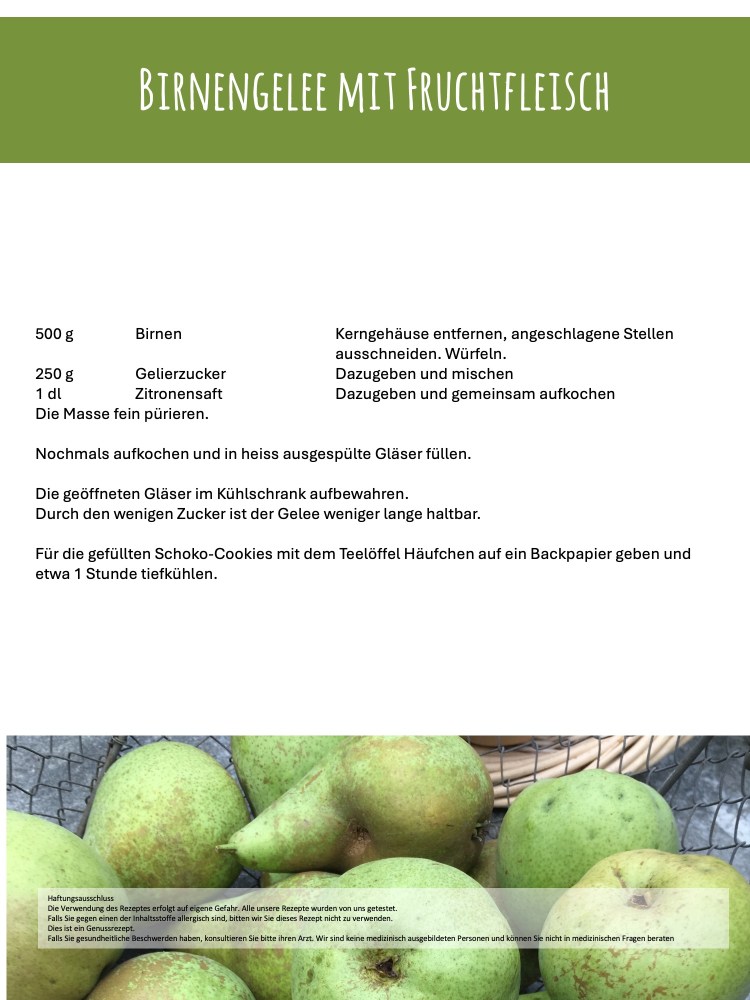 Damit ich keinen Verlust der feinen Früchte habe, habe ich daraus einen Birnen-Gelee gekocht. Dieser feine Birnengelee kommt nun am Morgen mit ins Müesli und darf diese feinen Guetzlis bereichern.
